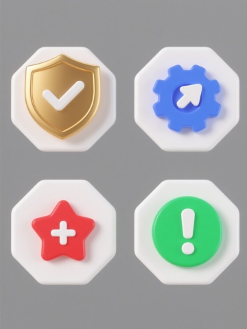 一组四个相同造型的地图定位标记图标系列,每个图标具有完全不同的材质表现,规整地排列在纯色背景上。图标主体为上半部分的红色水滴状标记和下半部分的蓝色圆形底座的组合形态。第一个图标呈现光滑的塑料材质,表面有细腻的高光,色彩为明亮的柠檬黄标记配天蓝色底座;第二个图标为磨砂金属质感,带有细微的纹理和柔和的反光,色彩为深灰色标记配银色底座;第三个图标是半透明的玻璃材质,边缘有光晕效果,色彩为淡紫色标记配浅青色底座;第四个图标为哑光陶瓷质感,表面温润无明显反光,色彩为橙红色标记配橄榄绿底座。所有图标保持一致的简约扁平风格,造型结构完全相同,仅在材质和整体色彩上做变换,整体布局整齐有序,背景为纯白色。