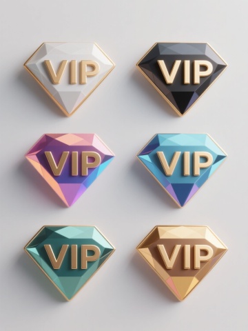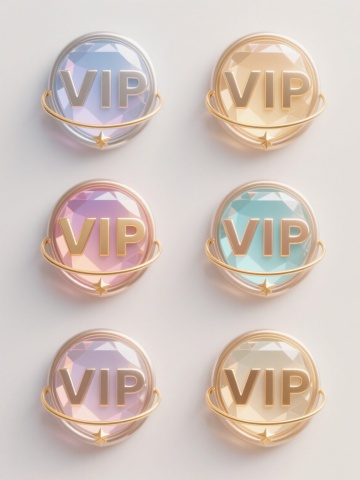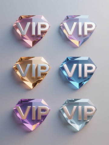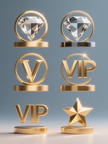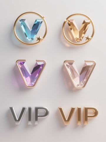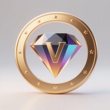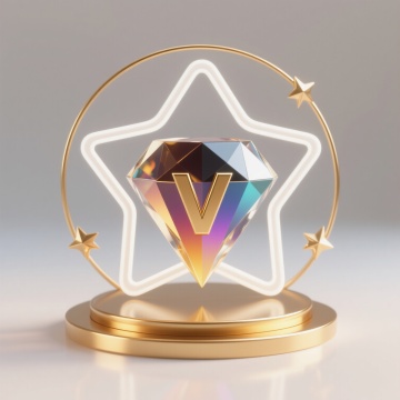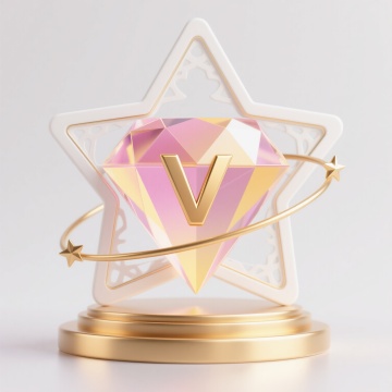 3D渲染的会员主题图标,白色背景,透明质感的星形外框,内部为多色渐变的钻石形状,钻石中心有金色立体"V"字,环绕着金色圆环和小星星装饰,整体呈现出光滑的金属光泽和细腻的光影效果,具有现代感和奢华感。