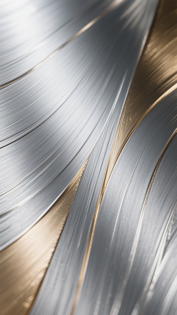 金属质感背景,银白色调,具有细腻的拉丝纹理,表面光滑且带有反光效果,整体呈现出冷冽、现代的工业风格,纹理走向规则且具有一定的韵律感,高光部分自然过渡,暗部细节丰富,营造出强烈的金属材质真实感。
