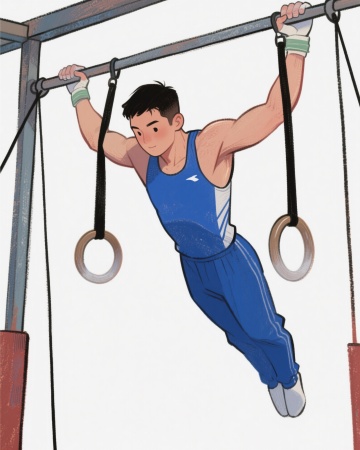 插画风格,夸张的篮球运动员扣篮动作,侧身跃起,右手持球举过头顶,红色球衣印有黄色数字“10”,蓝色短裤带黄色侧边条纹,蓝色运动鞋,粉色袜子,背景有黑色速度线表现动感,整体采用鲜艳明快的色彩,线条流畅,色块分明,人物肌肉线条夸张突出,充满力量感和运动张力。