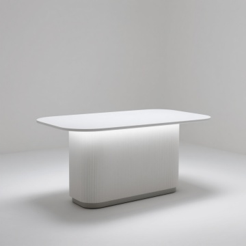 极简主义风格的白色台面,保持干净简洁的配色,台面边缘采用柔和的弧形设计,表面呈现细腻的哑光质感,底部有隐形的简约支撑结构,整体造型现代简约,线条流畅,光影效果柔和,营造出干净、整洁、通透的视觉氛围,无任何多余装饰元素,突出台面本身的形态美和材质感。