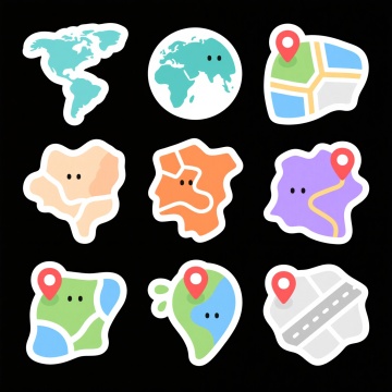 一套四个不同元素的系列素材集合,每个元素均采用扁平风格设计,线条简洁圆润,色彩鲜明饱和,规整排布于纯色背景上。第一个元素是生日蛋糕,绿色边框白色奶油,顶部插着红色带绿色条纹的点燃蜡烛,周围有黄色星星和彩色线条装饰;第二个元素是礼物盒,蓝色方形盒子配红色蝴蝶结,盒身有白色圆点图案,周围点缀橙色五角星和弧线;第三个元素是派对帽,黄色锥形帽顶有红色绒球,帽身有蓝色波浪条纹,周围环绕绿色圆点和短线;第四个元素是气球,粉色圆形气球系着紫色绳子,气球上有黄色笑脸,周围分布橙色螺旋线和蓝色小点。所有元素均保持一致的可爱卡通风格,表情生动,构图均衡,色彩搭配协调且每个元素整体色彩各不相同,形成系列感。