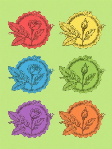 极简风格花卉图案系列,6个完全不同造型的玫瑰花束组合,保持单线勾勒的简约线条风格,每个玫瑰造型包含花朵、花茎、叶子和花苞元素,采用纯色背景,6种不同的整体色彩方案,图案规整地排列成一行或两行,线条流畅,轮廓清晰,无渐变无阴影,平面设计感,装饰性强,适合作为系列素材集合使用。