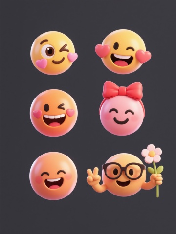 9个不同配色的圆形卡通表情包,每个表情包具有不同的夸张表情和手势造型,采用白色纯色背景,整体呈上下两行整齐对齐排列,每个表情包均为圆润的黄色基调(部分可调整为其他明亮配色),带有黑色粗眉毛、大而有神的黑白眼睛、红色嘴巴,部分表情包带有黄色星星等装饰元素,保持简洁可爱的2D平面设计风格,线条平滑,色彩鲜明,表情生动夸张,视觉层次清晰,信息传达直观。