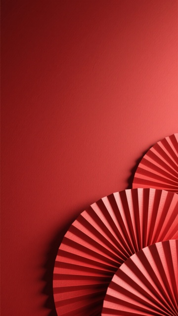 一幅以中国传统剪纸风格呈现的红色背景设计,整体采用正红色作为主色调,搭配金色作为点缀,营造出喜庆而庄重的氛围。画面上方以精细的剪纸工艺呈现出流畅飘逸的金色曲线,线条边缘带有细腻的镂空纹理,如同被精心裁剪的金箔丝带在红色背景上优雅舞动。光影效果方面,金色曲线从左上角向右下角延伸,左侧受强光照射呈现出明亮的高光,右侧逐渐过渡为柔和的阴影,形成明显的明暗对比,增强了画面的立体感和空间层次。红色背景并非单一色块,而是通过细微的渐变处理,从中心向四周呈现出由深到浅的色彩变化,中心区域颜色浓郁深沉,边缘则稍显明亮,仿佛光线从四周柔和地渗入。整个设计简洁大方,剪纸的镂空质感与光影的巧妙结合,既保留了传统元素的韵味,又展现出时尚现代的视觉美感,适合作为节日庆典或重要活动的背景使用。