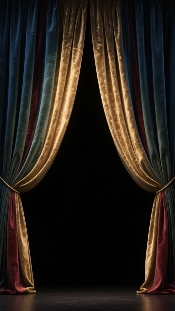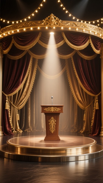 极简奢华黑金背景,深邃哑光黑色基调,顶部中央投射一道明亮锐利的金色聚光灯束,光束在光滑黑色地面形成清晰倒影,两侧垂落深灰近黑的垂坠感幕布,底部地面泛着淡淡金色光晕,整体营造出神秘、庄重、高级的舞台氛围感,光影对比强烈,金属质感光泽细腻,空间层次分明,暗部细节丰富,高光柔和不刺眼,具有强烈的视觉冲击力和高端设计感。