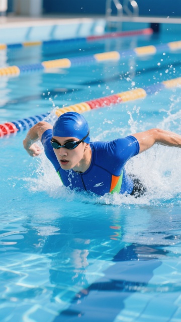 一张充满活力的运动场景照片,展现一位男性运动员在不同运动场景中的动态瞬间。画面采用低角度仰拍,捕捉人物充满力量感的肢体动作和运动姿态。温暖的夕阳从侧后方照射,在人物轮廓边缘形成明亮的金色光晕,同时在地面上投射出长长的影子。天空呈现出清澈的渐变蓝色,点缀着几朵轻盈的白云。人物穿着运动背心和短裤,脚上是专业的运动鞋,肌肉线条在运动中紧绷而富有爆发力。地面根据不同运动场景变化,可能是湿润的柏油跑道、红色的塑胶田径场、绿色的草地或山间小径,表面反射着阳光的光泽。背景可以是城市天际线、郊外的树林或山间的风景,营造出开阔而充满能量的氛围。整体色调以金色、橙色和蓝色为主,高对比度,清晰的细节,展现运动的速度感和力量美,捕捉运动中最具动感和张力的瞬间。