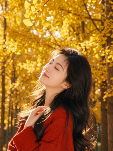 森林少女,环绕动态模糊的金鱼,金鱼发光,梦核暗调。脸部一束光,奶油肌,特写