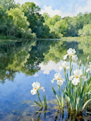 竖构图,水彩晕染技法绘制的晨曦时分沼泽地,画面以雾紫色和珍珠白为主色调。湿润的纸面上,深紫与浅紫如呼吸般自然交融,形成深浅不一的水纹肌理,近景几簇芦苇以灰紫色勾勒出朦胧轮廓,中景处晨雾以半透明的珍珠白层层晕染,部分区域颜料几乎完全稀释成雾状,透出纸张原有的米白色质感。纸张的纤维纹理在湿润处膨胀成微妙的波纹,干燥区域则保留着细腻的飞白,笔触如晨雾流动般轻柔,大面积留白让视线在紫白渐变中自然呼吸,整体散发着神秘而宁静的晨雾气息。