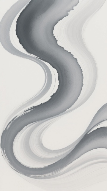 灰白色调的抽象背景,保持原图的灰白渐变色彩和谐度,采用自然柔和的光影效果,光源从左上方照射,形成自然的明暗过渡和细腻的高光表现,画面纹理改变为细腻的水彩晕染质感,带有柔和的水痕和透明叠加效果,取代原图的笔触纹理,整体构图保持空灵、流动的感觉,呈现出宁静而略带朦胧的氛围,色彩统一为不同深浅的灰色和白色,无明显物体轮廓,仅有抽象的色彩块面和柔和的过渡。