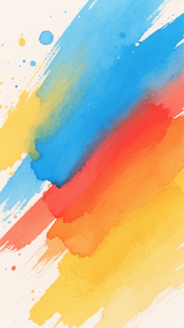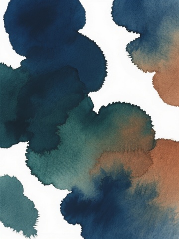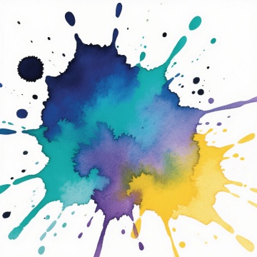 色彩丰富的抽象水彩画,画面中充满了粗犷奔放的笔触,浓墨重彩的颜料涂抹与飞溅的墨点交织,形成动感十足的视觉效果。主色调改为深邃的靛蓝色、沉稳的青绿色与明亮的柠黄色,色彩之间相互渗透晕染,既有大面积的色块铺陈,又有细腻的色彩过渡,整体呈现出一种神秘而充满活力的氛围,笔触质感厚重,颜料的肌理感清晰可见,色彩对比鲜明又和谐统一。