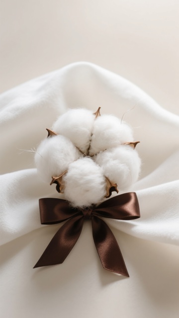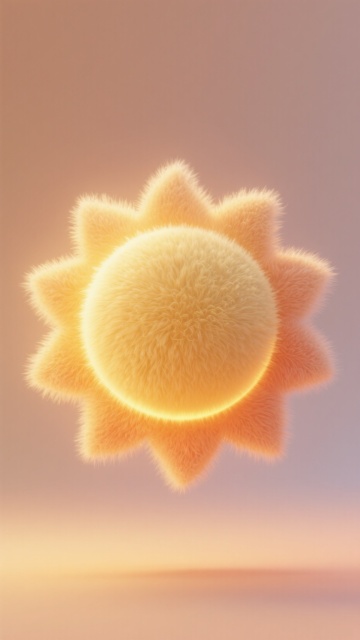 超写实3D渲染风格,一颗饱满洁白的棉花团静卧于起伏如波浪的浅米色柔软沙地之上,棉花纤维呈现出蓬松细腻的质感,底部带有干枯的棕色棉铃外壳。背景是渐变的天空,从上至下由清澈的淡蓝色过渡到温暖的粉橙色,点缀着几朵形态圆润、边缘柔和的粉白色云朵,整体光影柔和,营造出宁静、治愈、温暖的氛围,画面构图简洁,主体突出,色调和谐统一。
