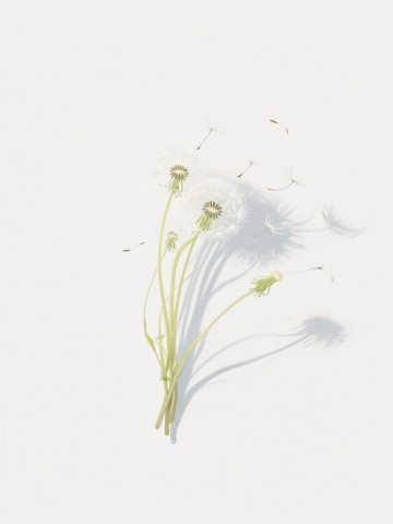 极简主义风格,白色纯净背景,中央放置一块圆形灰色石质平台,表面粗糙有自然纹理,左侧平放一朵白色雏菊花,花瓣呈放射状,黄色花心,右侧竖立一株细长绿色植物,带有几片椭圆形叶片,整体构图简洁对称,光影柔和,物体边缘清晰,色调统一,营造出宁静、自然、简约的氛围,无任何文字和装饰元素。