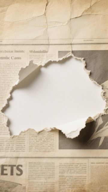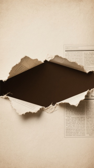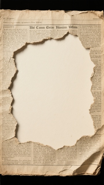 泛黄的古老羊皮纸纹理背景,带有深浅不一的褐色水渍和不规则撕裂边缘,纸张表面布满细密的竖条纹肌理,左右两侧分布着褪色的哥特式手写体英文文字,文字颜色为浅褐色并带有自然晕染效果,整体呈现出古朴、陈旧、略带神秘的历史感,光线柔和均匀,纸张中央区域留白较多,边缘文字密度较大,保持与原图一致的复古做旧风格和暖褐色调。