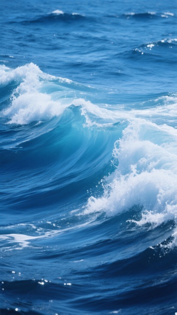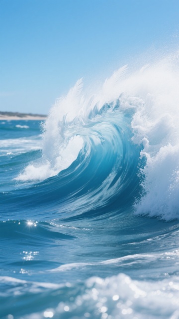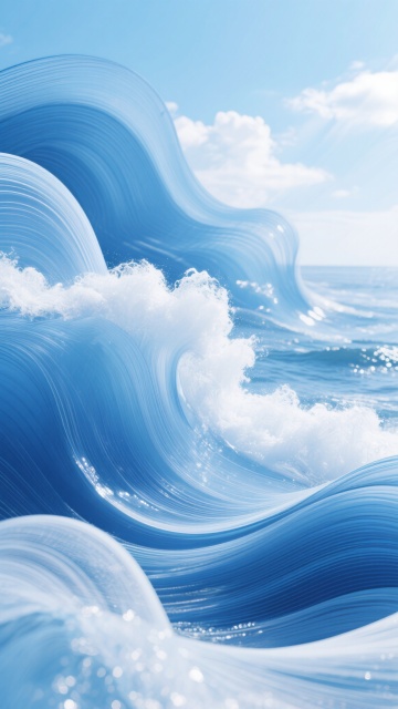 深蓝色宇宙背景中,巨大的浪花形态星云以螺旋状旋转,浪花边缘呈现出明亮的蓝白色光芒,内部是深邃的黑色漩涡,中心有一颗耀眼的恒星,周围点缀着无数闪烁的星星,浪花的纹理清晰可见,如同被强风吹拂的海面波涛,整体呈现出神秘而壮丽的宇宙景象,光影对比强烈,具有极强的视觉冲击力和空间感。