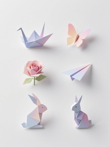 六个不同种类的植物元素,包括三叶草、蒲公英、多肉、蕨类、藤蔓和花朵,保持3D低多边形风格,清晰的边缘和简洁的几何面,每个植物使用不同的纯色渐变色彩,如三叶草用浅绿色渐变,蒲公英用白色到浅黄渐变,多肉用粉色渐变,蕨类用深绿色渐变,藤蔓用紫色渐变,花朵用橙色渐变,所有元素规整排布在纯白色背景上,形成一个系列素材集合,无阴影,简洁明快的视觉效果