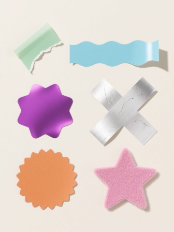 纯色背景上规整排布的六个完全不同的波浪线元素系列素材集合,每个波浪线拥有独特的材质、形态粗细和颜色,包括:1. 纤细的金色金属光泽波浪线,边缘锐利,呈现精密的工业质感;2. 粗粝的深红色磨砂陶土波浪线,带有细微的颗粒纹理和手工感;3. 半透明的天蓝色玻璃波浪线,表面光滑,带有柔和的光影折射效果;4. 柔软的鲜绿色毛绒波浪线,线条边缘有自然的绒毛质感,呈现温暖的织物特性;5. 厚重的深紫色大理石纹理波浪线,带有自然的石纹肌理和渐变色彩;6. 轻盈的亮黄色泡沫材质波浪线,表面有细小的气泡孔洞,呈现蓬松的轻盈感。所有波浪线元素保持波浪形态的核心内容,但在粗细、曲度和整体造型上各具特色,整体布局整齐有序,背景纯净无干扰元素。