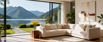 极简主义风格的现代室内场景,清晨柔和自然光透过不同角度设计的木质边框玻璃窗洒入,窗台布置简约绿植,窗外是远山与蓝天,室内浅色墙面与温润木地板形成和谐色调,光影层次分明,营造宁静通透的氛围,可看到多种窗户布置方式,如推拉窗、固定窗与飘窗的不同组合,玻璃呈现轻微磨砂质感,水面倒映窗框轮廓,整体画面干净利落,空间感开阔,细节处展现精致的日式侘寂美学。