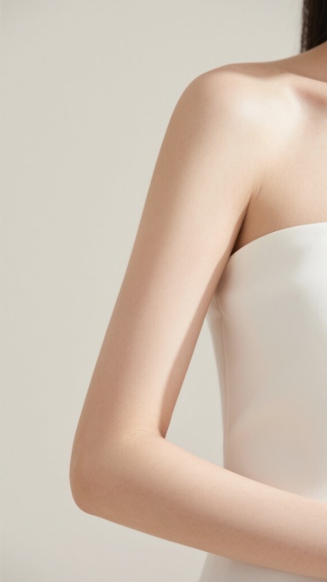 一张高清晰、写实风格的女性手部特写照片,手部肌肤呈现自然细腻的质感,肤色为健康的浅米色,带有轻微的肤色不均和细小的汗毛细节,指甲修剪整齐干净,呈现自然的淡粉色甲床和透明的半月痕。光线从斜上方柔和照射,在手背形成微妙的高光区域,指关节处有自然的阴影过渡,手腕线条流畅优美,手掌内侧隐约可见淡青色的血管纹理。手部姿势改为手掌微微张开,食指与中指自然并拢向前伸出,无名指和小指略微弯曲,拇指轻轻搭在食指根部,整体姿态放松且富有优雅的动态感。背景为纯白色,无任何杂质或纹理,突出手部的主体地位,图像边缘清晰锐利,无模糊或虚化效果,整体呈现出专业护肤品广告般的纯净、细腻、高级的视觉质感。