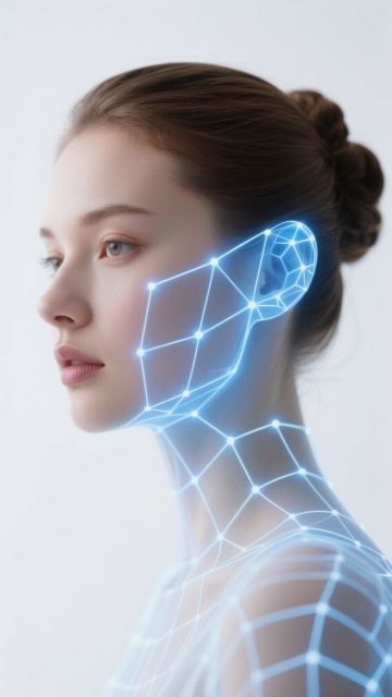 极简全景构图,未来感超净实验室核心区域,通体采用哑光纳米陶瓷与超白玻璃构建,地面是无缝拼接的防静电白色复合树脂板,映射着悬浮式环形LED灯带的冷白光,中央是L形悬浮实验台,台面由超透明石英玻璃制成,下方可见蓝色脉冲数据流在半透明的钛合金支架中流动,左侧墙面上嵌入全息投影式试剂存储系统,显示着分子结构的三维模型,右侧是一整面可变色智能玻璃幕墙,当前呈现为淡蓝色半透明状态,过滤后的自然光与室内照明完美融合,空气中悬浮着微小的全息粒子,整体色调为纯净白与科技蓝的和谐共生,线条极致简洁,空间感通透,营造出超越现实的理性与精确之美。