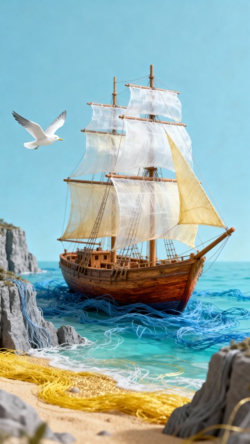 一幅展现帆船在广阔海面上航行的摄影作品,整体呈现温暖的日落色调,天空从顶部的明亮橙黄色逐渐过渡到底部的柔和橘红色,巨大的金色太阳位于画面上方中央,光芒万丈,在平静如镜的海面上投射出一条长长的、闪烁着金色光芒的倒影,延伸至画面下方中央。一艘白色的单桅帆船正航行在这片金色的海面上,帆船体积较小,位于画面中下部,船帆饱满,清晰可见,船身及船帆在水面上形成清晰的倒影。海面呈现出从近景的深蓝色向中远景的金黄色渐变的色彩层次,水面波光粼粼,细节丰富,展现出写实的海水质感和光影效果。画面采用极简的构图,大面积的天空和海面形成开阔的留白,营造出宁静、悠远、壮丽而又充满希望的氛围,没有任何文字、LOGO、二维码或多余元素干扰主体视觉。