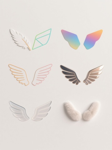 白色背景上,一组6个规整排布的系列素材集合,每个元素均为具有轻盈飘逸感的羽毛,保持羽毛的核心形态结构与细腻柔软的质感,采用简约现代的设计风格,光影柔和,边缘清晰平滑,每个羽毛拥有完全不同的造型,整体画面呈现出高度的统一性与设计感,色彩方面每个羽毛分别变换为不同的鲜明色调,整体构图平衡且信息传达效率高,视觉层级分明,符合现代简约的审美需求。