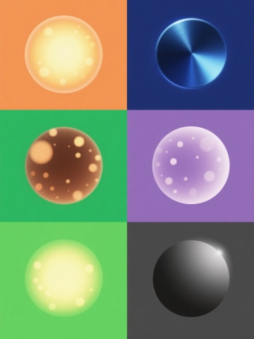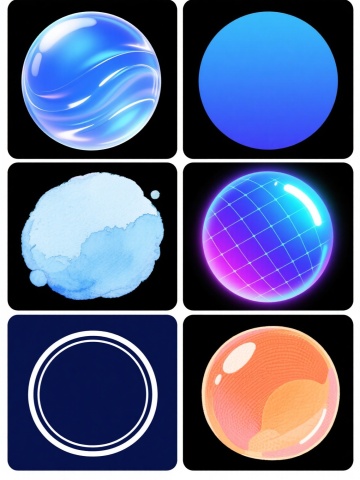 一张由6个完全不同风格的光斑元素集合组成的系列素材海报,每个独立单元均保持圆形光斑的核心造型及内部细微光点特征,背景为纯色(各单元背景色不同),整体采用规整的网格状排布;第一个单元为温暖的橙黄色调渐变光斑,柔和半透明质感,风格清新明快;第二个单元为深邃的靛蓝色调光斑,带有金属光泽,风格科技感十足;第三个单元为复古的赭石色调光斑,边缘模糊有颗粒感,风格怀旧文艺;第四个单元为明亮的草绿色调光斑,高饱和度,风格活泼跳跃;第五个单元为优雅的藕荷紫色调光斑,带有轻微磨砂质感,风格浪漫柔美;第六个单元为沉稳的炭灰色调光斑,明暗对比强烈,风格简约现代。每个光斑单元内部细节丰富,光斑大小不一、疏密有致,整体设计感强,视觉层次分明,信息传达直接,符合系列素材的统一性与多样性要求。