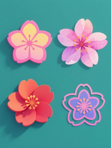 手绘插画风格的花卉系列素材集合,纯色背景,画面整体色彩变换丰富,六朵不同类目的花卉元素规整排布。第一朵是山茶花,花瓣层层叠叠,呈现出优雅的粉色渐变,花蕊为金黄色,叶片深绿有光泽;第二朵是小葵花,花盘圆形饱满,黄色花瓣呈放射状排列,花茎细长,叶片嫩绿;第三朵是百合花,白色花瓣舒展,花蕊为橙红色,花茎挺拔,叶片青翠;第四朵是满天星,细小的白色花朵簇拥在一起,形成蓬松的花球,绿色花茎纤细;第五朵是紫罗兰,紫色花瓣娇嫩,花蕊黄色,花茎较短,叶片深紫绿色;第六朵是洋桔梗,粉色花瓣边缘有波浪状起伏,花蕊淡黄色,花茎修长,叶片嫩绿。所有花卉元素均保持手绘插画的细腻笔触和清晰轮廓,色彩鲜明和谐,整体设计感强,信息传达清晰,符合花卉主题的审美和展示目的。