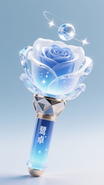 2. 俯视角,在午夜蓝背景上悬浮的冰雕玫瑰,半透明冰晶呈现幽蓝冷光,花瓣纹理中封存着细小气泡与裂纹,花茎末端滴落的冰凌折射出棱镜般的光谱,整体散发着极地冰川的凛冽清透感。