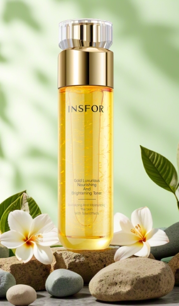 奢华金属风设计,优雅清新感十足,3D轻拟物手法展现高端护肤品的精致与纯净。