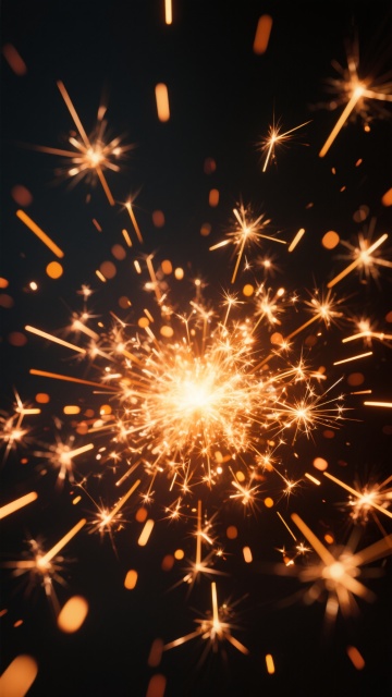 纯黑色背景,金色光点从画面中心区域向四周呈不规律放射状发散分布,光点大小不一、疏密有致,中心区域光点最为密集明亮,向外逐渐稀疏暗淡,形成自然的视觉扩散效果,整体呈现出深邃神秘而又璀璨华丽的氛围,数字艺术质感,平滑过渡的光影层次,垂直构图。