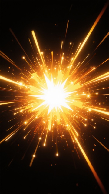 一张保持纯色背景的抽象光效海报,整体艺术风格为光效抽象,主色调为深棕色、金色和明亮的白色,光影运用呈现出强烈的光源中心效果,光线强度极高,中心区域有明显的高光表现,周围散布着细长的金色光丝和锐利的光斑,光效具有透明且带有锐利边缘的质感,整体构图呈现出从中心向四周发散的动态视觉引导线,氛围营造出神秘而又充满能量的感觉,画面中没有具体物体,核心视觉元素为抽象的光效形态,这些光效形态呈现出细长的线条状和点状,在纯色背景上以中心聚集、四周扩散的空间位置关系分布,光效之间仿佛在进行能量的互动,视觉层级上中心明亮区域为最重要的视觉焦点,通过极高的亮度和对比度被强调,信息传达效率高,能在短时间内让观者感受到强烈的光效冲击力和神秘感,设计感体现在光效形态的动态平衡与纯色背景的简洁对比上。