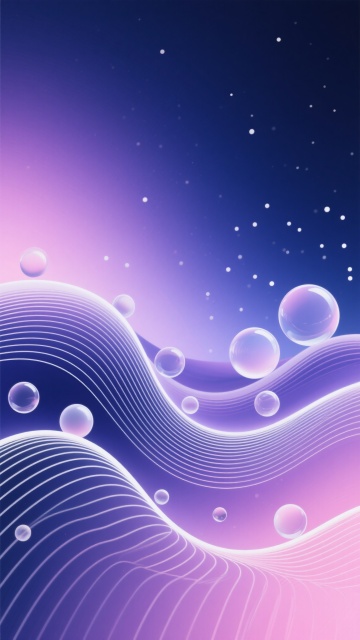 粉紫渐变为主色调的梦幻背景,柔和的粉色与浪漫的紫色交织融合,画面中点缀着无数闪烁的白色星星和明亮的星点,巨大的半透明光晕球体悬浮在中央,周围环绕着轻盈飘逸的曲线状光带,整体呈现出柔和朦胧的光影效果,融入银河星空元素,增添梦幻神秘感,背景中分布着大小不一的圆形光斑和光晕,营造出浪漫、梦幻、空灵的氛围,画面纹理细腻平滑,光影过渡自然柔和,充满童话般的唯美意境。