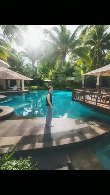我的同款AI小女孩!清新实景与卡通动漫结合,轻拟物风设计,夏日泳池边的时尚与童趣