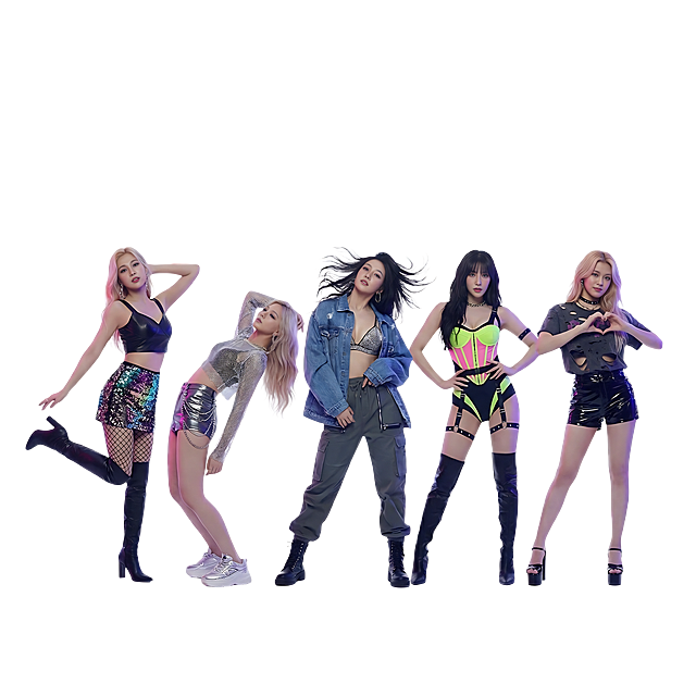 女生,黑金色挑染长发,穿黑色皮质吊带搭配牛仔长裤,手拿镶钻麦克风,动作活泼,站在韩范打歌舞台上,舞台光影交织。整体动感潮流。详情