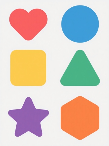 系列爱心图标设计,6个完全不同装饰的同元素内容素材集合,规整排布。每个爱心均保持相同的简约平面风格、光滑无纹理的纯色填充质感、圆润流畅的轮廓线条和纯白色背景。爱心颜色分别为:明亮的正红色、柔和的天蓝色、温暖的明黄色、清新的草绿色、优雅的淡紫色和活泼的粉红色。每个爱心上有独特装饰:1. 红色爱心:顶部有三条等距水平白色细线条;2. 蓝色爱心:表面分布着大小不一的白色圆点图案;3. 黄色爱心:中央有一个白色五角星图案;4. 绿色爱心:边缘有一圈白色波浪线;5. 紫色爱心:内部有一个白色的心形镂空图案;6. 粉色爱心:表面有交叉的白色斜线条纹。整体设计简洁明快,色彩鲜明,视觉层级清晰,信息传达高效,适合作为装饰元素或图标使用。