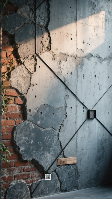 一张具有丰富纹理的墙面背景,整体呈现出类似高级灰调的水泥质感,表面有细腻且自然的斑驳肌理,包括深浅不一的灰色色块、细微的划痕和粗糙的颗粒感,光线以柔和的漫反射方式均匀洒在墙面上,营造出一种简约、质朴而又略带粗犷的工业风氛围。墙面可呈现出不同的配色方案,如温暖的赭石色、沉静的墨蓝色、复古的砖红色等,每种配色都保留着同样自然的斑驳纹理;纹路方面,除了原始的水泥肌理,还可以融入几何线条纹路、不规则的石块拼接纹路、复古的砖块纹路或带有微妙植物藤蔓暗纹等;材质上,可展现出磨砂质感的乳胶漆墙面、带有细微孔洞的文化石墙面、光滑与粗糙区域并存的艺术涂料墙面或具有金属光泽点缀的混合材质墙面;装饰元素方面,墙面上可有简约的黑色金属线条勾勒,或嵌入小型的几何形状装饰物,也可局部有做旧处理的木板拼接,整体保持与原始墙面一致的自然、质朴且略带粗犷的风格基调,画面中无任何文字、LOGO、二维码及多余信息。