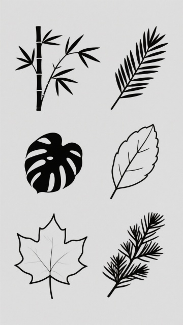 一套六个不同造型的竹子系列素材集合,每个竹子均采用简洁的平面设计风格,线条流畅平滑,无渐变和立体效果,纯色背景,每个竹子造型保持竹竿分段、竹节和细长竹叶的核心元素但姿态各异,有的挺拔向上,有的微微倾斜,有的竹叶茂密,有的竹叶疏朗,整体色彩变换为六个不同的单一色调,所有竹子图案规整地排布在画面中,形成协调统一的系列感。