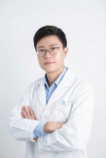 一位亚洲男性医生,身着洁白挺括的医生白大褂,内搭白色衬衫并系着深蓝色领带,胸前挂着银色听诊器,双臂交叉于胸前,站姿挺拔自信,戴着一副细框眼镜,眼神沉稳专注,面带温和从容的微笑。背景设定为医院环境,可包含柔和灯光下的白色墙面、模糊的医疗设备轮廓或带有简约线条的医院走廊元素,整体画面采用高清写实风格,光线明亮柔和,色彩以白色和浅色调为主,营造出专业、可靠且略带温馨的医疗氛围,构图采用经典人像布局,人物主体清晰突出,细节刻画精致。
