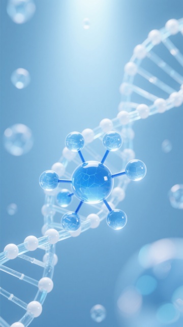 医疗科技感背景,高清写实风格,以蓝色和白色为主色调,柔和明亮的光线从上方照射,营造出洁净、专业、充满希望的氛围。画面中心可替换为不同形态的医疗场景元素,如:显微镜下的细胞结构、DNA双螺旋模型、手术器械特写、药剂师调配药物的手部动作、医学影像图(CT、MRI)的可视化呈现、疫苗研发实验室的精密仪器、医护人员身着防护服的背影、智能医疗设备的界面展示等。背景融入半透明的六边形几何图形、数据流线条、分子结构模型等科技元素,采用虚实结合的构图,前景元素清晰锐利,背景元素带有轻微的模糊和光晕效果,增强空间层次感和科技感,整体设计需保持信息传达的清晰高效,符合医疗行业严谨、创新、关怀的专业形象。