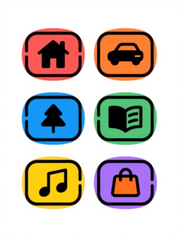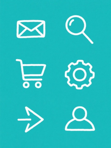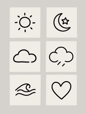 一套六件不同款式上衣的图标集合,每件均为简约黑色线条勾勒,轮廓清晰,包含连衣裙、短袖T恤、衬衫、短裙、毛衣和外套,每个图标独立置于纯色背景上,整体采用统一的极简主义平面设计风格,线条粗细均匀,无渐变和阴影,所有图标规整排列,保持一致的视觉语言和设计感。