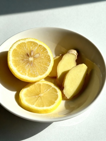 俯拍构图,晨光斜射的厨房台面上,三只饱满的意大利柠檬呈黄金三角排列,右侧一只被精准切开30°角,露出11粒完整籽实与放射状排列的果肉纤维,截面渗出的透明汁液正沿着果皮缓缓滴落。柠檬表皮覆盖着大小不一的水珠,最大的一颗悬在切开柠檬的边缘即将坠落,阳光穿透水珠形成微型彩虹。下方流动的蜂蜜在深色大理石台面上形成不规则镜面,完美倒映出柠檬的轮廓与窗棂的几何光影。背景是虚化的黄铜咖啡壶与散落的榉木茶匙,温暖的琥珀色光晕中漂浮着细小的柑橘精油分子,ISO 100的细腻质感下,柠檬皮的毛孔与蜂蜜的粘稠拉丝清晰可见。