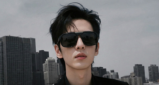 将图中的眼镜向上移动,佩戴到眉毛下方的位置,保持其他元素不变详情