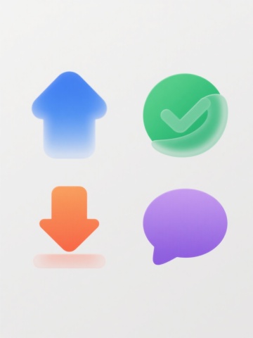 图标集合,纯白色背景,保持相同的元素、风格,但变换整体画面色调,生成6个完全不同的造型,每个图标均为简洁的箭头形状,采用渐变色彩填充,线条平滑无锯齿,边缘清晰,具有现代简约的设计风格,箭头指向下方,整体呈现出一种稳定、直观的视觉效果,6个图标分别使用6种不同的渐变色调,且造型各具特色,在保持箭头这一核心元素不变的前提下,通过改变箭头的粗细、角度、装饰细节等方式形成完全不同的造型,整体设计具有良好的视觉统一性和辨识度,符合现代图标设计的审美标准。