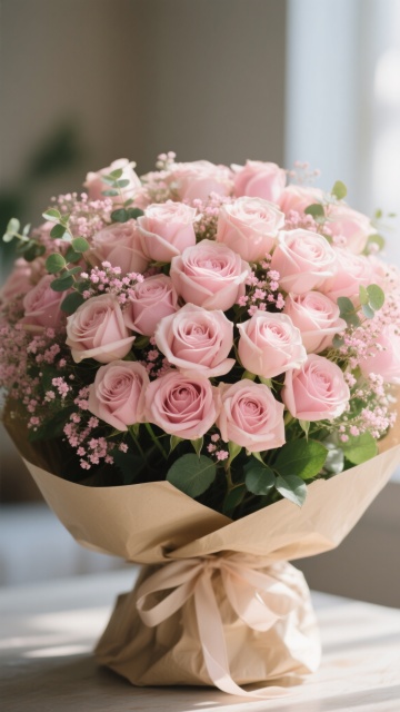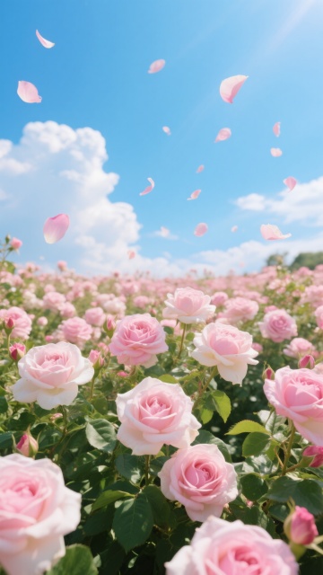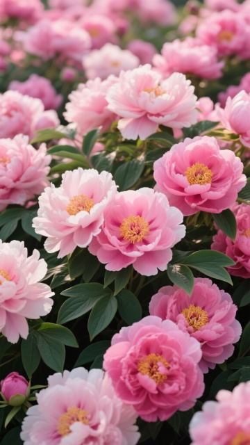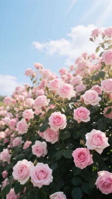 一张由大量盛开的粉色玫瑰花组成的无缝背景墙,玫瑰花花瓣层次丰富,色彩从柔和的浅粉到饱满的深粉渐变,每一朵玫瑰都具有清晰的纹理和自然的形态,其间点缀着深绿色的玫瑰叶子,整体呈现出极高的写实摄影质感,光线明亮柔和,从上方均匀洒下,为花瓣边缘带来细腻的高光,阴影部分过渡自然,营造出温馨浪漫的氛围,画面构图饱满,玫瑰花紧密排列,形成视觉冲击力强的花卉背景。