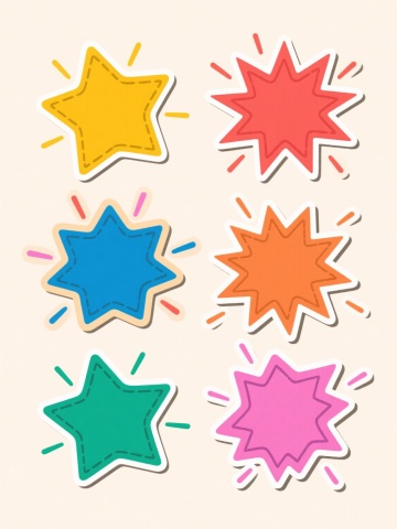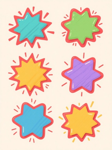一组6个完全不同元素的系列素材集合,每个元素均保持与原图一致的现代扁平插画风格,使用纯色背景,采用橙色、粉色、蓝色、黄色等明快鲜亮的主色调,元素边缘有清晰的浅色描边,呈现简洁圆润的造型和均匀平整的色块填充,无复杂光影和立体效果。元素内容均为庆祝礼花相关类目,包括:1. 炸开的彩色礼花筒,喷射出彩色纸屑和彩带;2. 系着蝴蝶结的礼品盒,盒盖打开并飞出彩色五角星和圆形纸屑;3. 漂浮的彩色气球束,气球上系着卷曲彩带,周围散落小圆形纸屑;4. 点燃的生日蜡烛,火焰上方有彩色火花和小纸屑;5. 手持的派对喇叭,喇叭口有音符和彩带飞出;6. 五角星形状的礼花爆炸效果,中心向外辐射彩色线条和纸屑。6个元素呈规整的2行3列网格排布,每个元素间距均匀,整体构图简洁平衡,色彩风格统一,信息传达清晰明快,符合庆祝、派对、节日的欢快氛围。