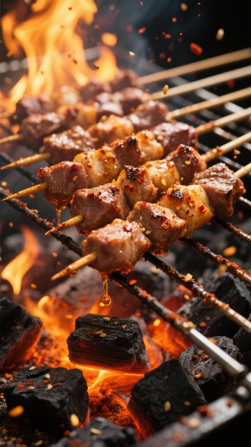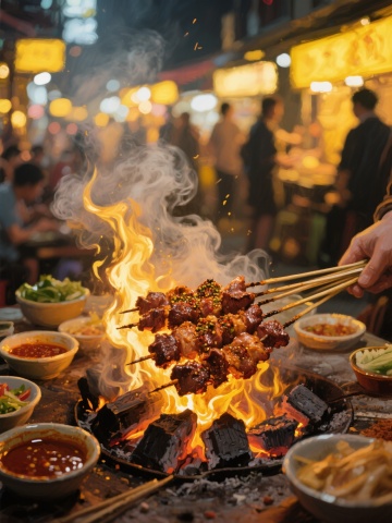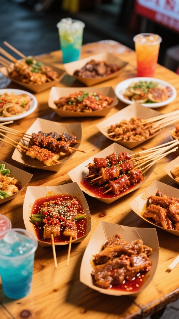 高清美食摄影风格,明亮欢快的暖黄色调环境光,两只手正高举碰杯的冰镇啤酒杯,杯中金黄啤酒泡沫丰富溢出,水花四溅,背景中摆满丰盛海鲜盛宴,包括鲜红大龙虾、烤串、生蚝、柠檬片、辣椒和蔬菜,食物色泽鲜亮诱人,整体构图饱满,光影对比强烈,营造出热闹欢庆的聚餐氛围,画面充满食欲感和活力。