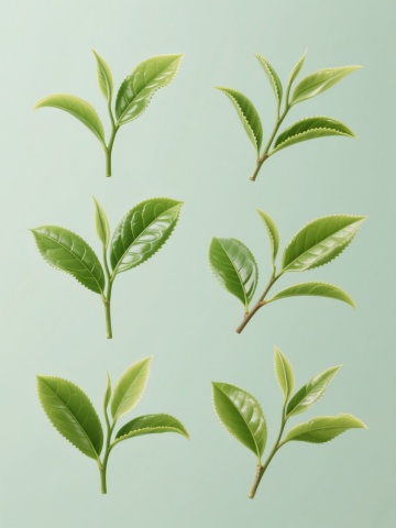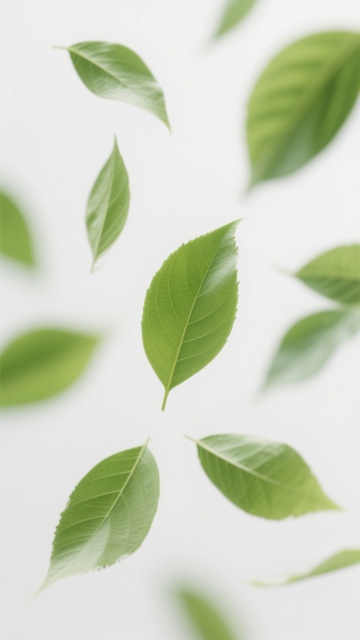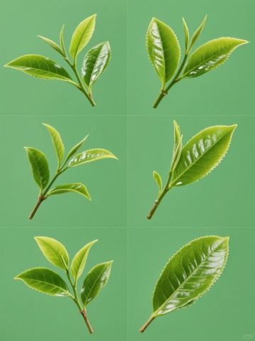 一堆新鲜翠绿的茶叶,茶叶堆表面有许多嫩绿的茶叶叶片正轻盈地向上扬起、悬浮、飘落,形成动态的飞舞效果。画面整体采用写实风格,以不同深浅的绿色为主色调,营造出清新自然的氛围。光线从画面斜上方以柔和的金色阳光照射下来,在茶叶堆上形成明亮的高光区域和清晰的阴影层次,叶片边缘被阳光勾勒出淡淡的金色轮廓,背景为深绿色的模糊渐变,突出前景茶叶的细节和立体感,整体画面层次分明,质感细腻,展现出茶叶的新鲜与生机。
