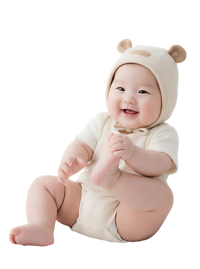 保留原图片构图和婴儿姿势,将图1婴儿头上的白色小熊帽子替换成图2的浅蓝色带小熊耳朵和Baby Bear标签帽子,将婴儿脚上的白袜子替换成图2的浅蓝色带棕色小熊头的鞋袜,保持整体风格和光影一致,自然真实详情