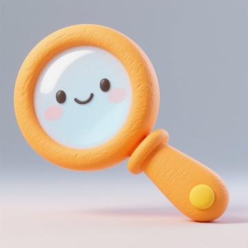 一组6个相同造型的卡通风格放大镜图标系列素材,每个图标保持圆形镜片、黄色镜框和蓝色手柄的基本元素内容但具有完全不同的材质表现,整体色彩变换为清新多彩调,采用纯色背景,所有图标规整地横向或网格状排布;第一个放大镜呈现光滑塑料质感,镜框为亮橙色,手柄为天蓝色,表面有细微高光;第二个为磨砂玻璃材质,镜框呈半透明淡紫色,手柄为磨砂白色,带有细腻纹理;第三个是金属材质,镜框为哑光银色,手柄为拉丝金色,边缘有金属倒角和反光;第四个是木质材质,镜框和手柄均为浅棕色木纹,带有自然木节和雕刻纹理;第五个是毛绒材质,镜框为粉色绒毛质感,手柄为白色毛绒,边缘有柔软毛边;第六个是水晶材质,镜框和手柄均为透明深蓝色水晶,内部有折射光线和气泡细节,每个图标都保持2D扁平化设计风格,简洁圆润的线条,无渐变阴影,色彩鲜明饱和,适合作为UI图标或素材使用。